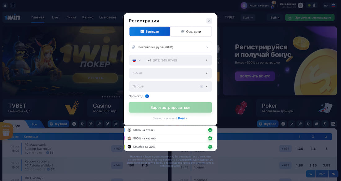 Букмекер выделяется ярким сайтом, высокими коэффициентами, отличными бонусами. Дополнительно представлен онлайн-кинотеатр. Чтобы играть или делать ставки, потребуется обязательно пройти регистрацию на официальном сайте 1вин.